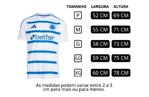 O escudo do Cruzeiro Esporte Clube vem bordado em destaque no peito, enquanto as três listras icônicas da Adidas percorrem os ombros. Um manto que une tradição e modernidade em cada detalhe.