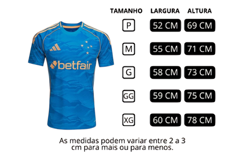 A nova Camisa Cruzeiro III 25/26 chega com um visual moderno e imponente, combinando o azul-escuro com detalhes dourados em um design elegante que celebra a grandeza e a história do Cabuloso. Desenvolvida pela Adidas, essa peça traz conforto, tecnologia e muito estilo para o torcedor celeste que gosta de se destacar.