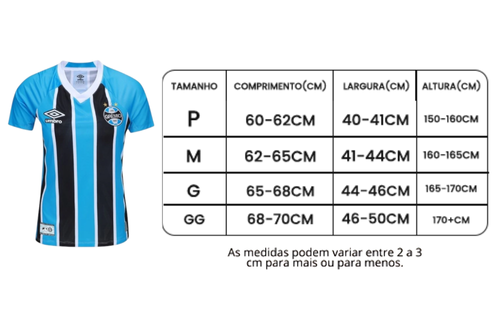A Camisa Grêmio I 25/26 Torcedora Feminina celebra a tradição tricolor em uma modelagem pensada para a torcedora: corte levemente acinturado, acabamento refinado e a clássica combinação de listras verticais em azul, preto e branco. A gola é em "V" e a nuca traz a etiqueta “Imortal”, acima da bandeira do Rio Grande do Sul — um detalhe que homenageia a história do clube e sua torcida.