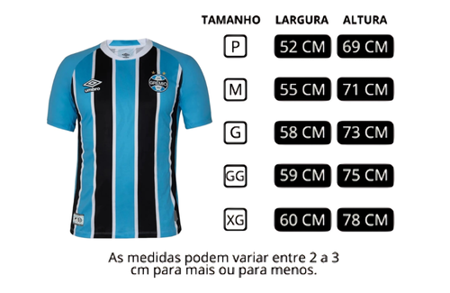 A Camisa Grêmio I 25/26 Torcedor Umbro Masculina celebra a tradição tricolor com um visual moderno e acabamento premium. O design mantém as clássicas listras verticais em azul, preto e branco, com gola careca e mangas cuidadosamente acabadas. A peça traz ainda a etiqueta “Imortal” na nuca, acima da bandeira do Rio Grande do Sul, em homenagem à torcida e à história do clube.
