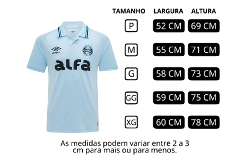 A Camisa Grêmio II 25/26 Torcedor Masculina resgata parte importante da história do Imortal com seu novo uniforme reserva. Agora em azul celeste, ele abandona o branco tradicional para trazer frescor e identidade, inspirado nos modelos clássicos dos anos 90 e 2000. O design possui grafismos sutis na parte frontal, gola polo com fechamento diferenciado, e listras azul, preto e branco nas mangas e na gola. Na parte de trás da gola, a palavra “IMORTAL” reforça o espírito tricolor.