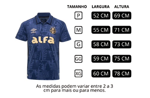 A Camisa Grêmio III 25/26 Torcedor Masculina é perfeita para o torcedor que deseja representar o clube com sofisticação. O design azul-marinho com detalhes em dourado traz estampas sutis de plantas e animais dos Pampas, gola polo com listras pretas e a palavra “IMORTAL” na parte interna da gola. Produzida em tecido leve e respirável, garante conforto e caimento ideal para torcer em qualquer ocasião.