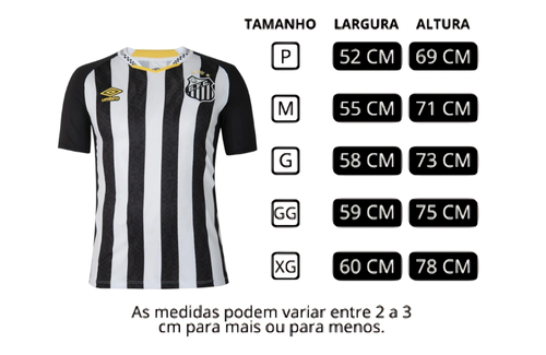 O escudo do Santos Futebol Clube é bordado em alto relevo e o logo Umbro também vem bordado, garantindo um visual sofisticado e durabilidade. Um manto feito para quem vive o Santos em cada momento — dentro e fora da Vila Belmiro.