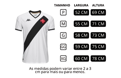 A Camisa Vasco II 25/26 Torcedor Kappa Masculina representa o manto reserva do Gigante da Colina. Com base predominantemente branca e a clássica faixa diagonal preta, resgata a identidade visual vascaína com elegância e impacto visual.