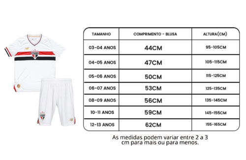 Kit Infantil São Paulo I 25/26 New Balance, Camisa e Short SPFC Infantil, Uniforme São Paulo Criança 2025, Conjunto São Paulo Original NB Dry, Kit Tricolor Infantil 25/26.