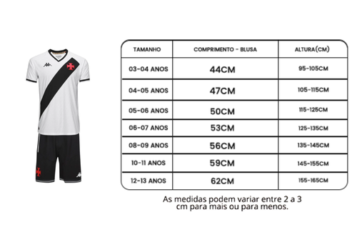 O Kit Infantil Vasco II 25/26 é o presente perfeito para os pequenos torcedores cruzmaltinos! O conjunto vem com camisa e short no design branco com a tradicional faixa diagonal preta, símbolo máximo da história vascaína. Produzido com tecido leve e respirável, o modelo proporciona conforto, liberdade de movimentos e durabilidade para o uso diário ou esportivo.